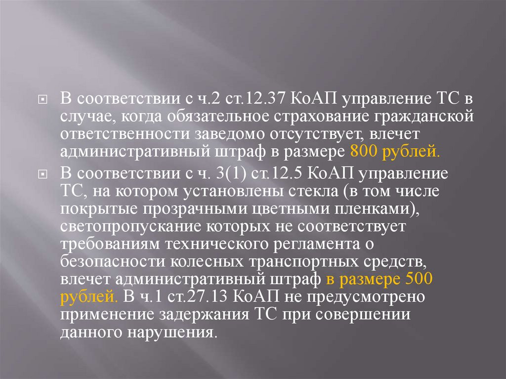 В соответствии с ч.2 ст.12.37 КоАП управление ТС вслучае, когда обязательное страхование гражданской