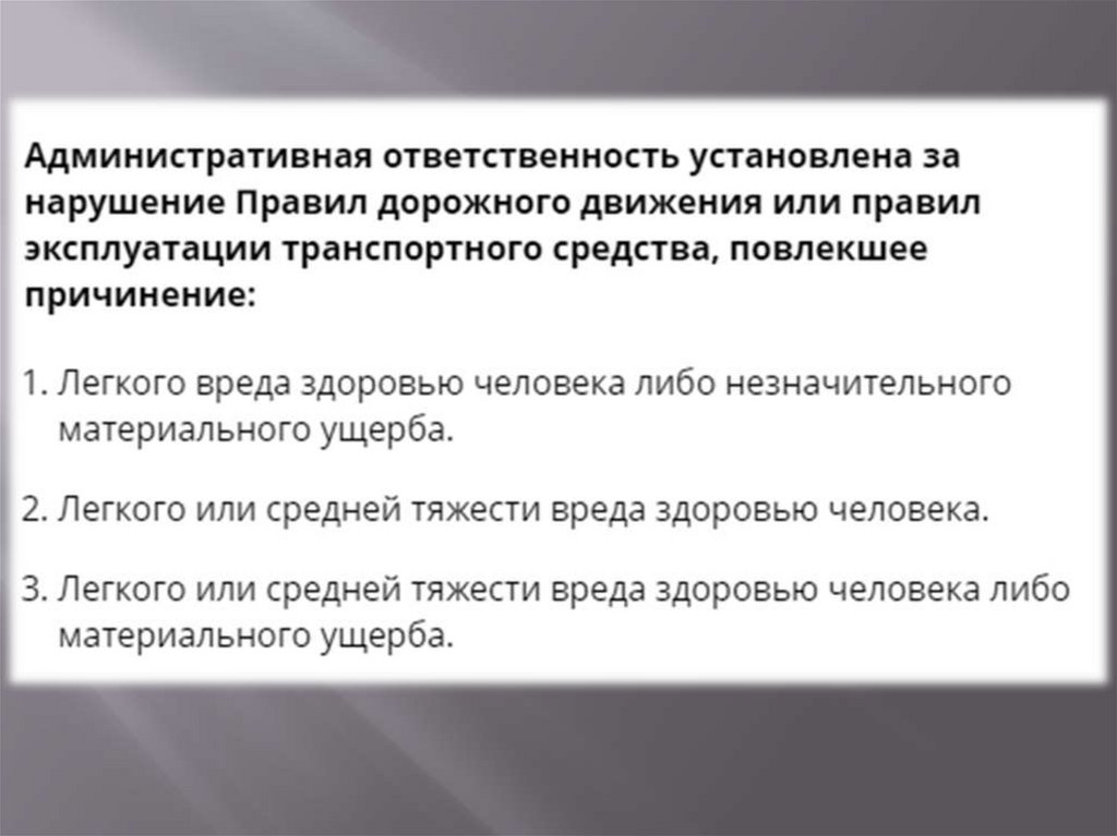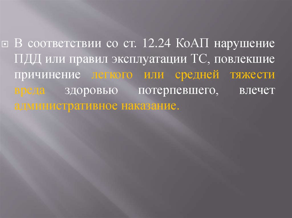 В соответствии со ст. 12.24 КоАП нарушениеПДД или правил эксплуатации ТС, повлекшие