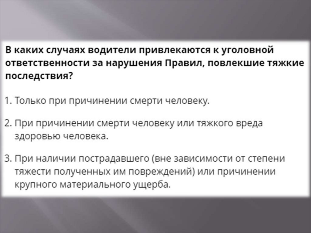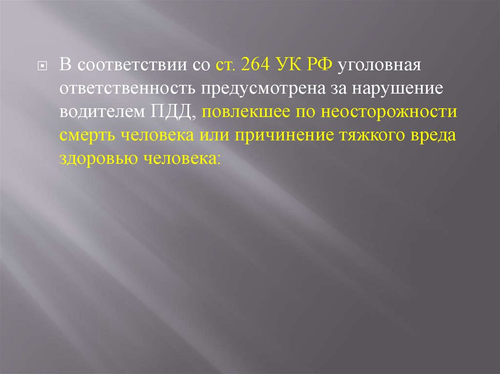 В соответствии со ст. 264 УК РФ уголовнаяответственность предусмотрена за нарушение