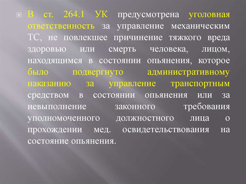 В ст. 264.1 УК предусмотрена уголовнаяответственность за управление механическим