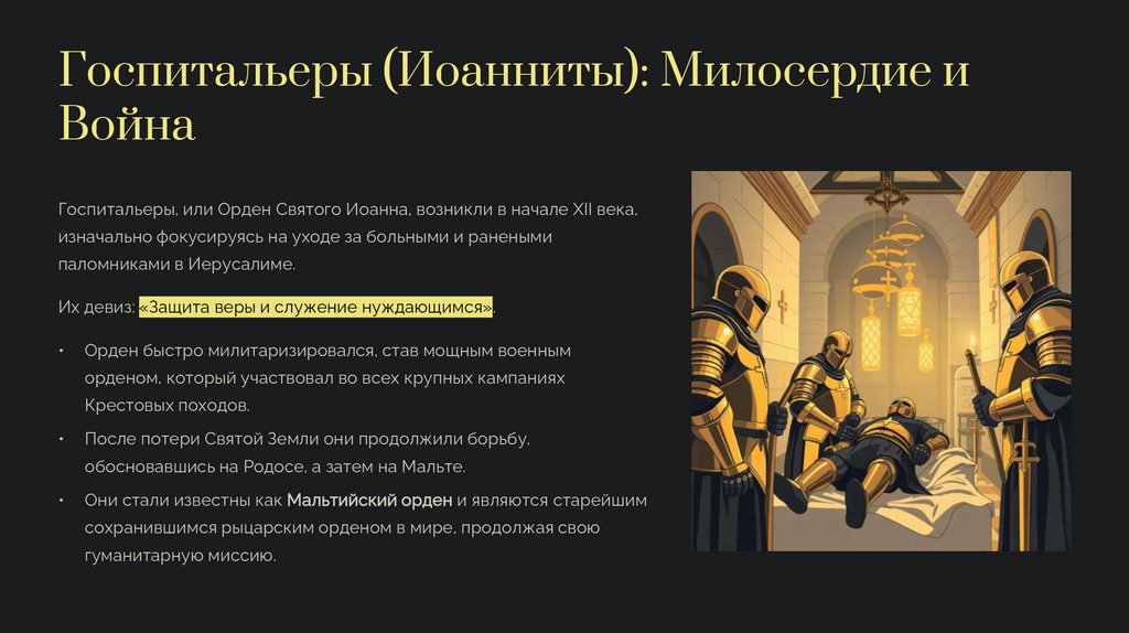 Госпитальеры (Иоанниты): Милосердие иВойна