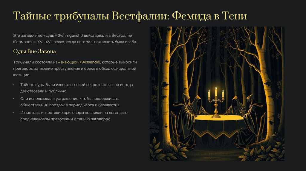 Тайные трибуналы Вестфалии: Фемида в ТениЭти загадочные «суды» (Fehmgericht) действовали в Вестфалии