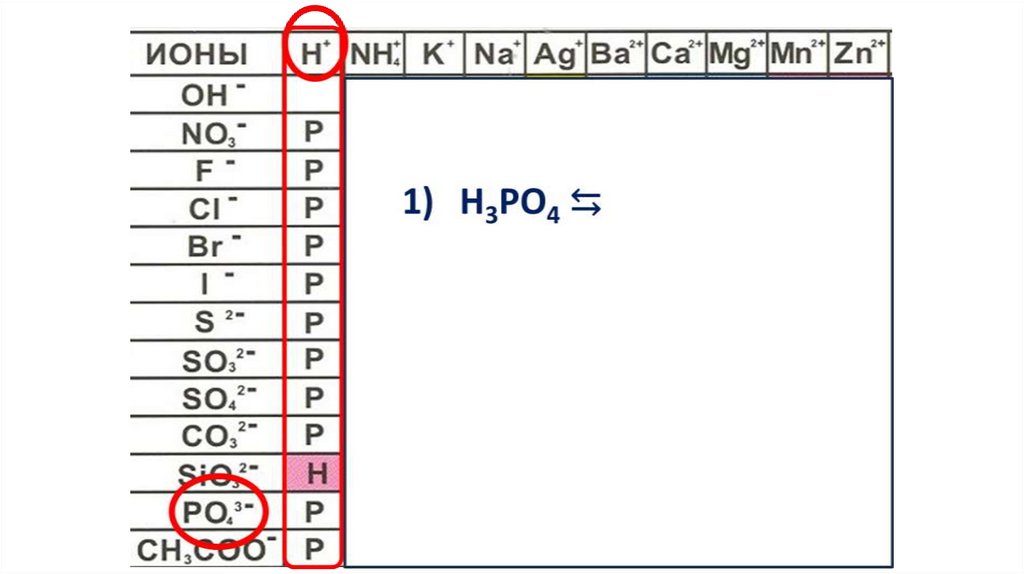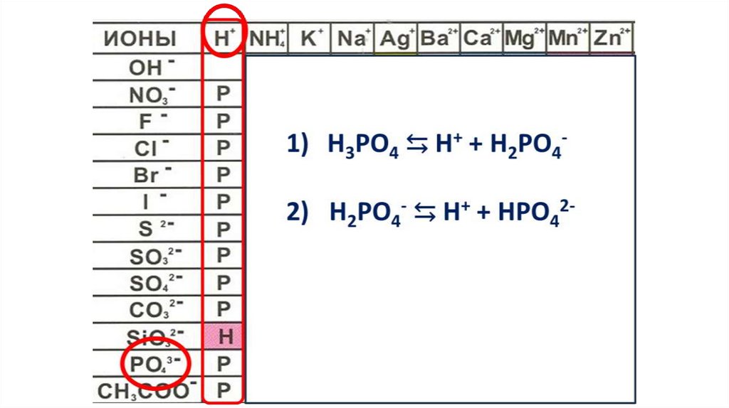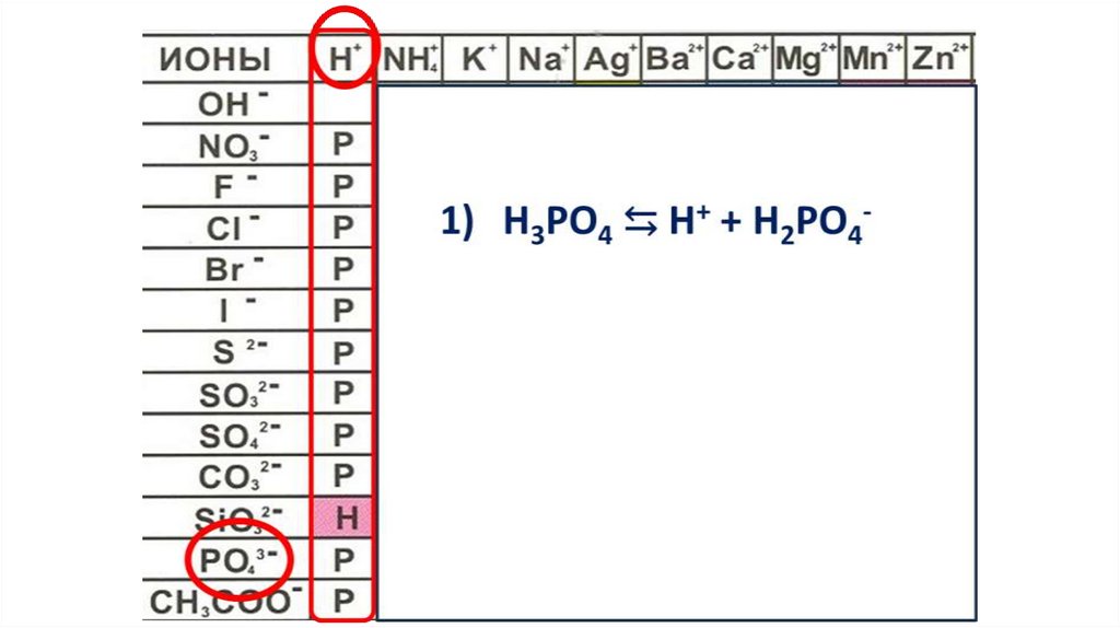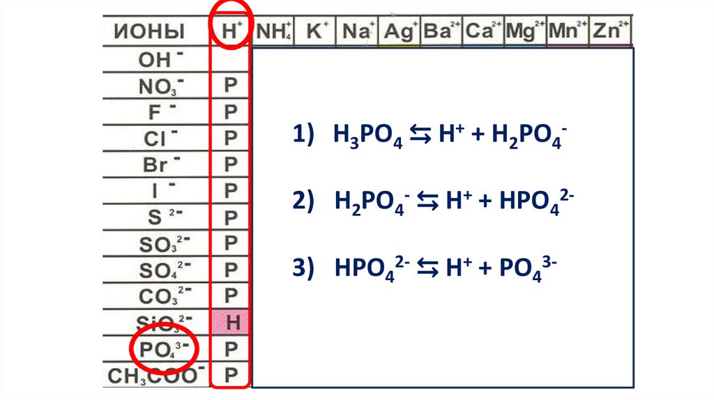 1) H3PO4 ⇆ H+ + H2PO4-2) H2PO4- ⇆ H+ + HPO423) HPO42- ⇆ H+ + PO43-