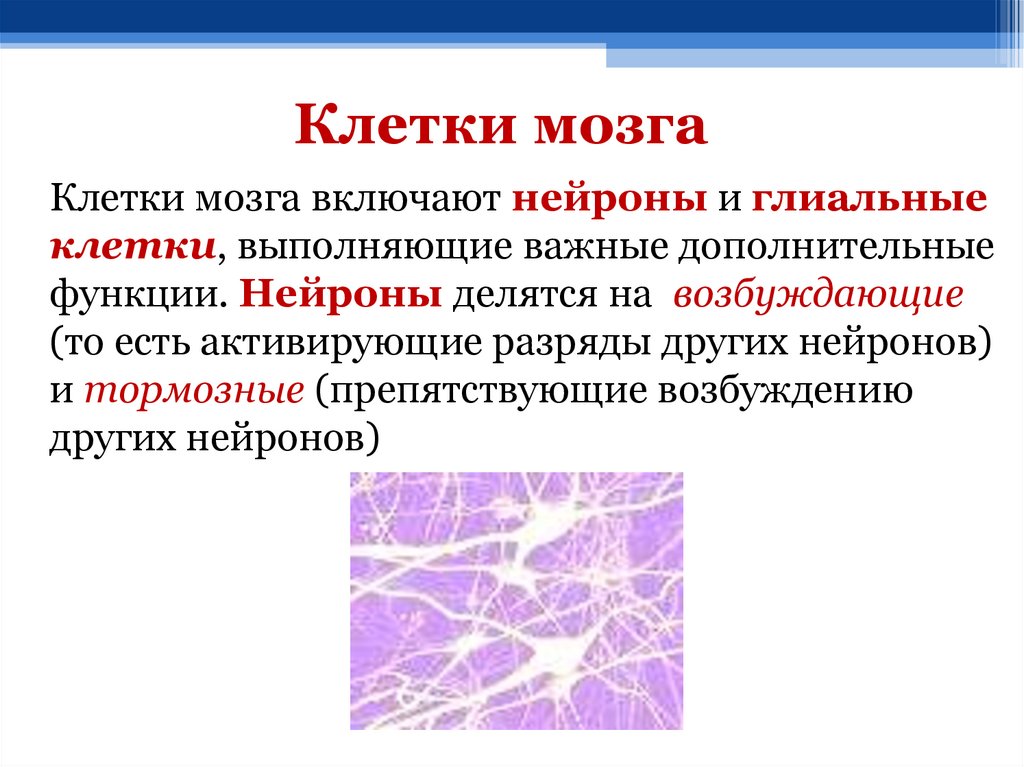 Клетки мозгаКлетки мозга включают нейроны и глиальные