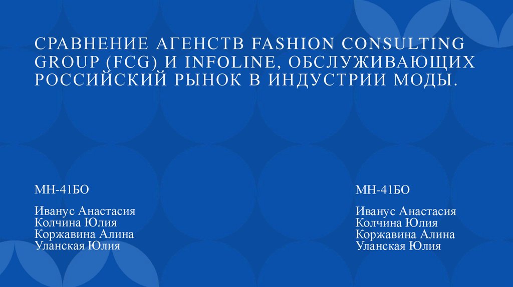 СРАВНЕНИЕ АГЕНСТВ FASHION CONSULTINGGROUP (FCG) И INFOLINE , ОБСЛУЖИВАЮЩИХ