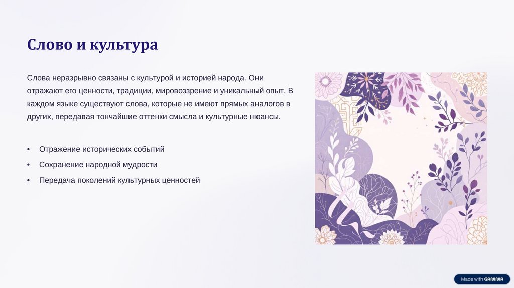 Слово и культураСлова неразрывно связаны с культурой и историей народа. Они