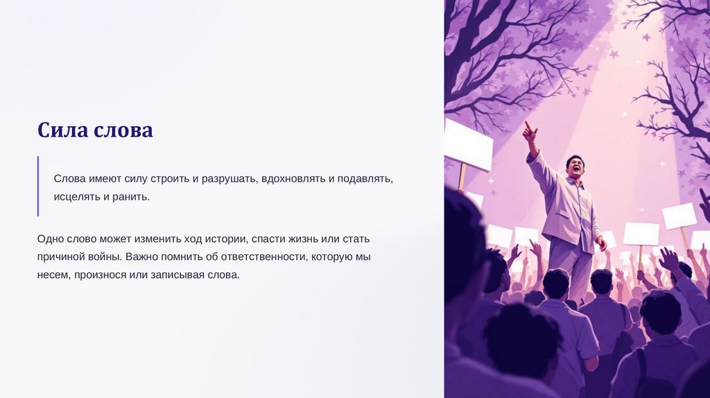 Сила словаСлова имеют силу строить и разрушать, вдохновлять и подавлять,