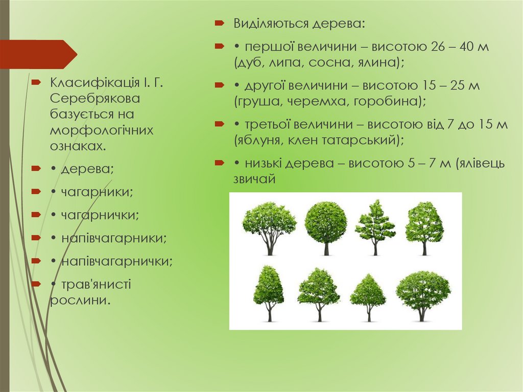1. Фанерофіти (від грецького phaneros - явний) - брунькипоновлення розміщені високо над поверхнею землі (дерева,
