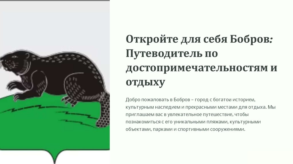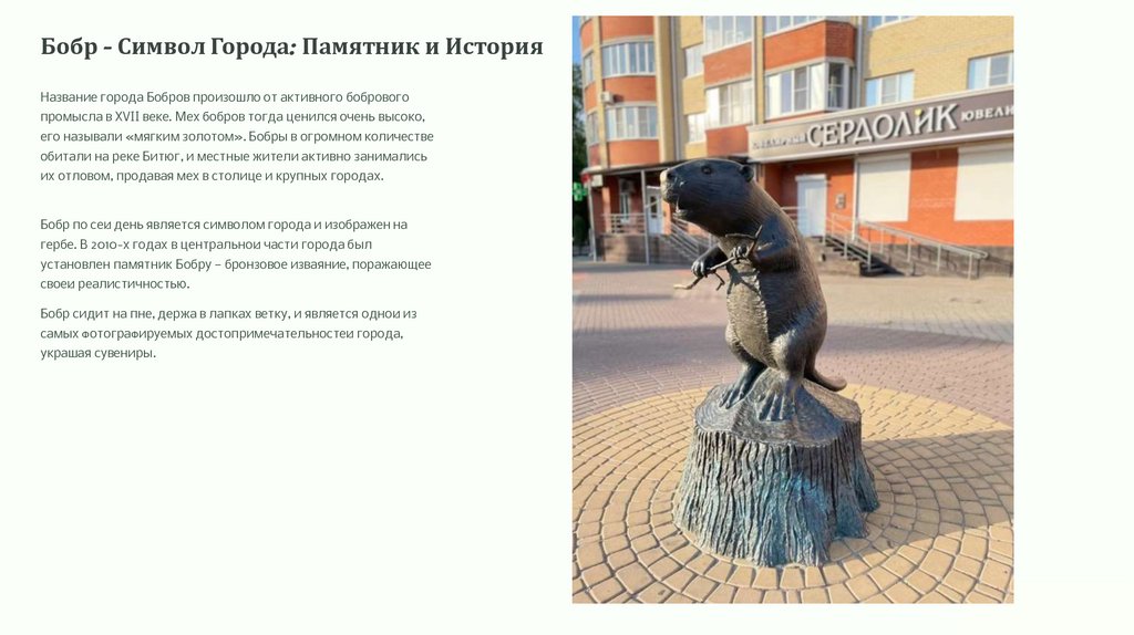 Бобр - Символ Города: Памятник и ИсторияНазвание города Бобров произошло от активного бобрового