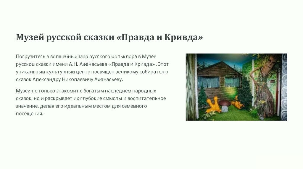 Музей русской сказки «Правда и Кривда»Погрузитесь в волшебный мир русского фольклора в Музее