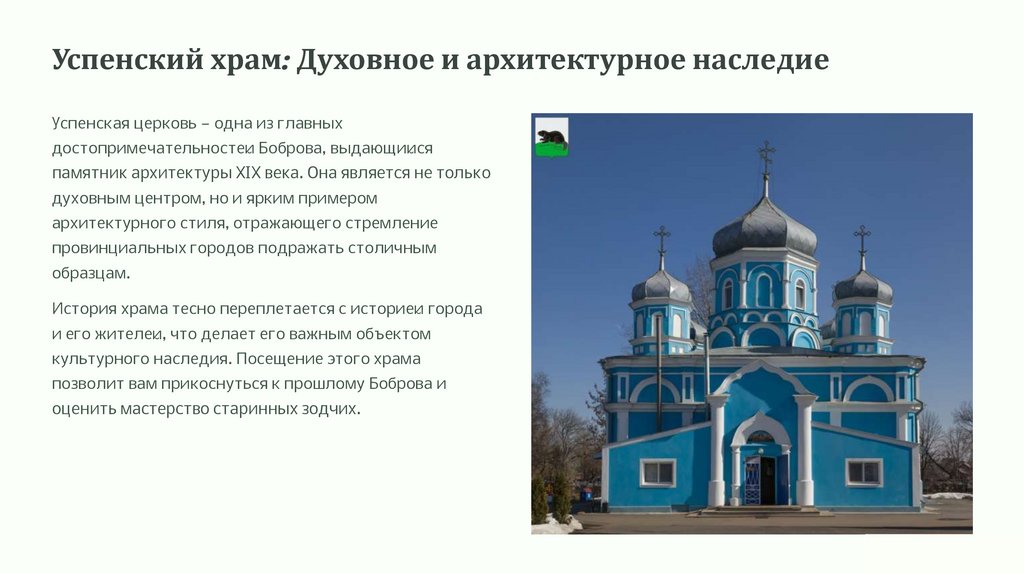 Успенский храм: Духовное и архитектурное наследиеУспенская церковь — одна из главных