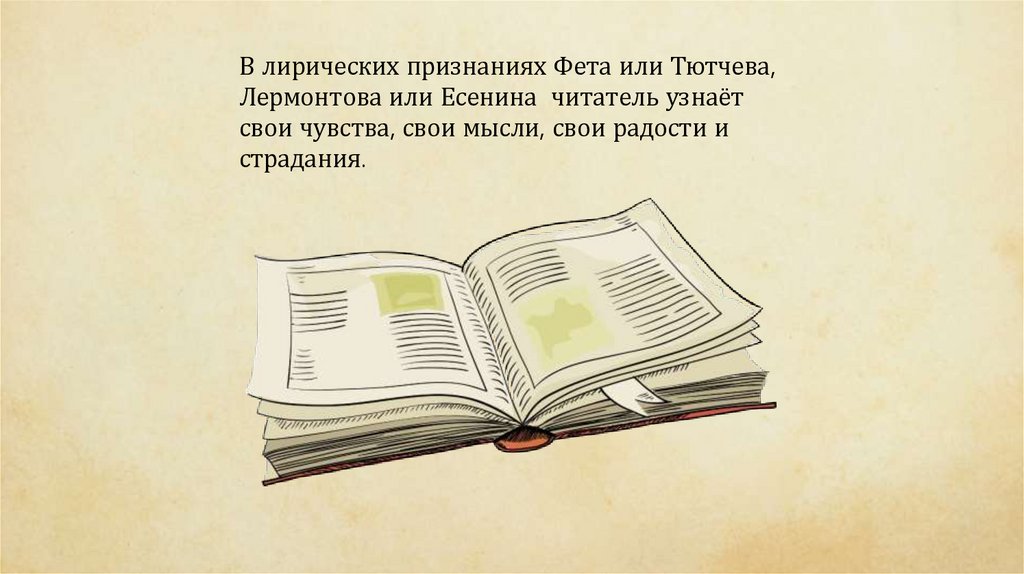 В лирических признаниях Фета или Тютчева,Лермонтова или Есенина читатель узнаёт