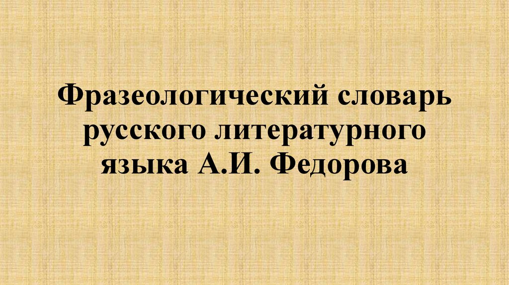 1. Фразеологический словарь русского литературного языка А.И. Федорова