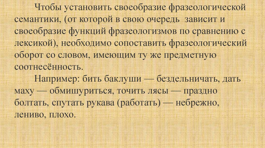 Чтобы установить своеобразие фразеологическойсемантики, (от которой в свою очередь зависит и