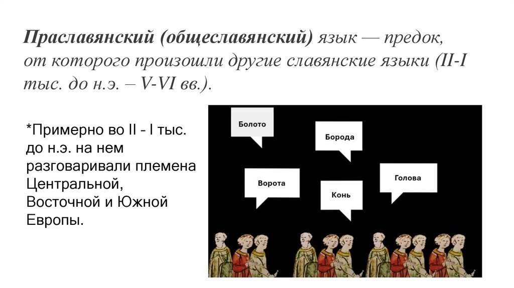 Праславянский (общеславянский) язык — предок,от которого произошли другие славянские языки (II-I