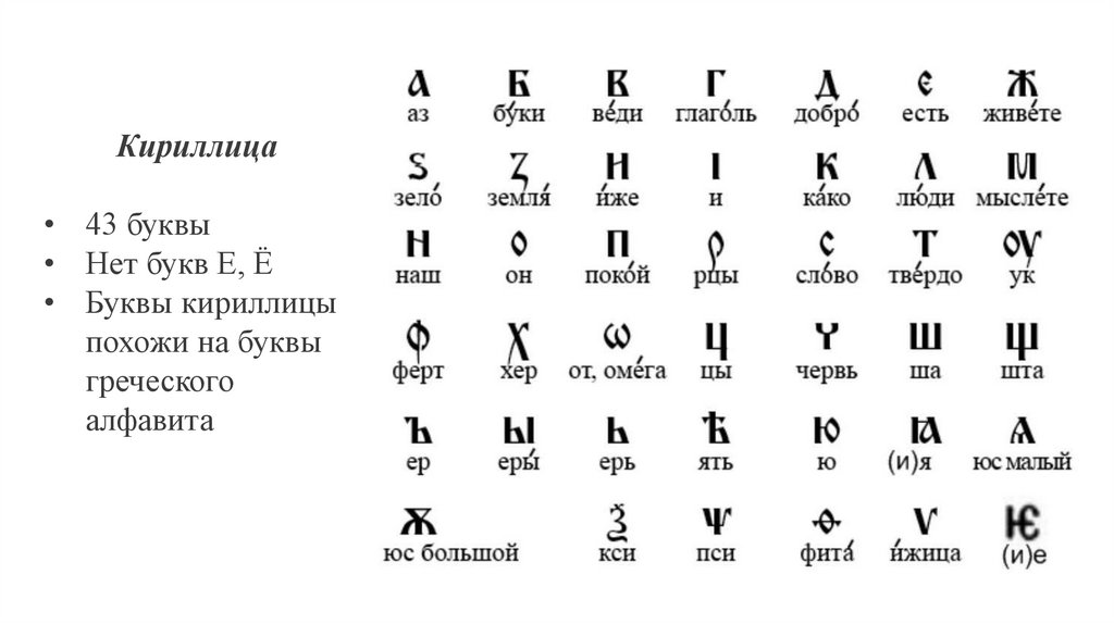 Кириллица• 43 буквы