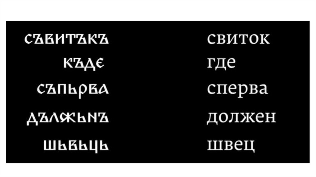 • Исключение букв «ижица», «фита»,