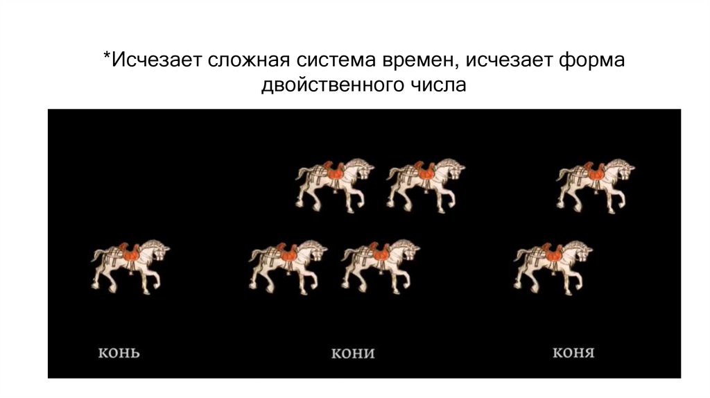*Исчезает сложная система времен, исчезает формадвойственного числа
