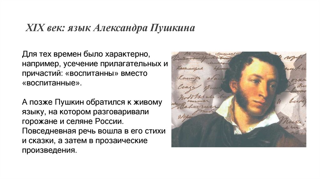 XIX век: язык Александра ПушкинаДля тех времен было характерно,