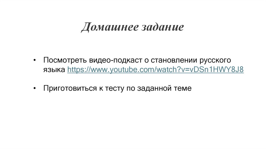 Домашнее задание• Посмотреть видео-подкаст о становлении русского