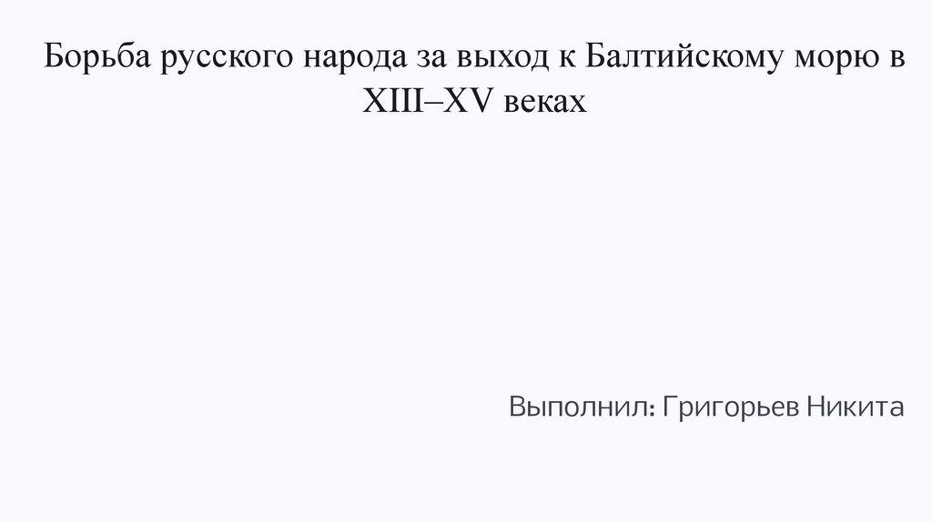 Борьба русского народа за выход к Балтийскому морю вXIII–XV веках