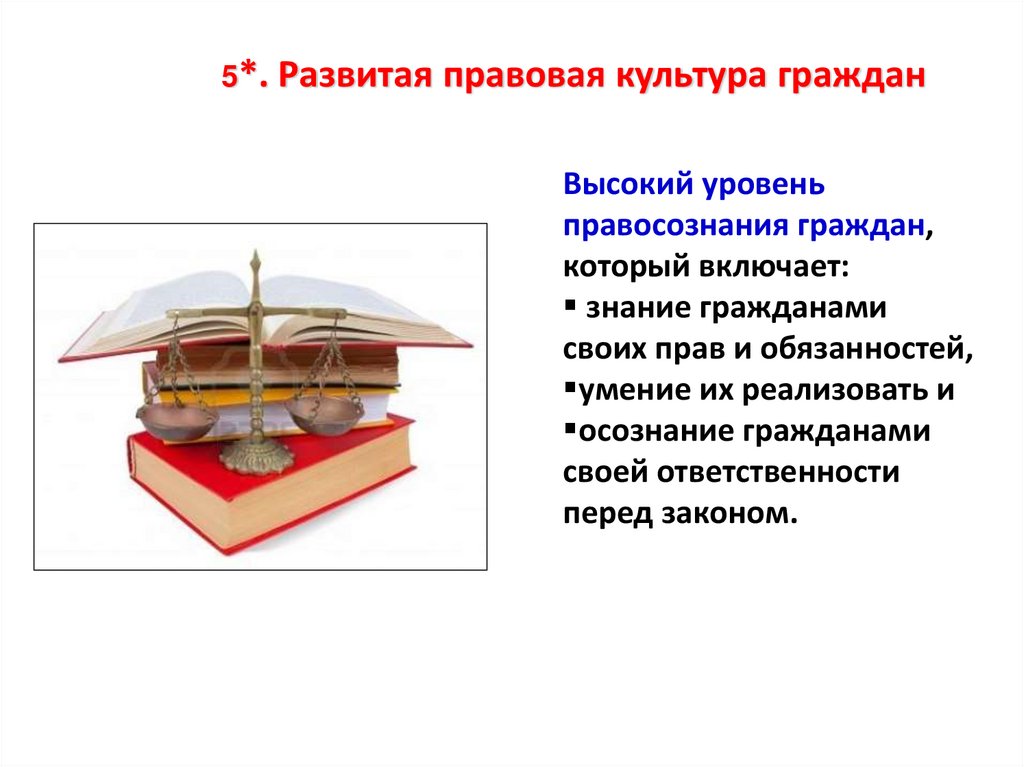 7) развитая правовая культура граждан