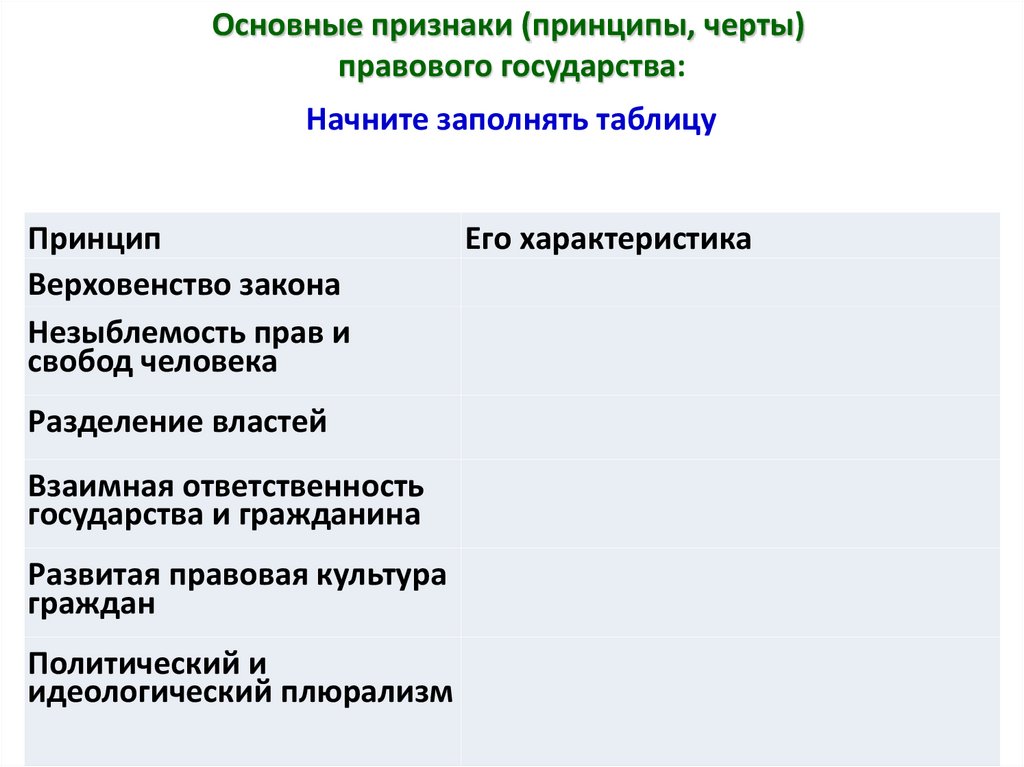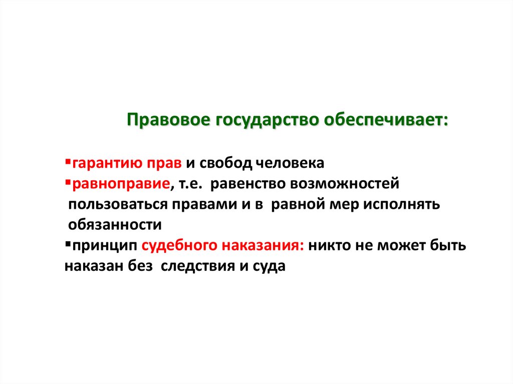 Основные признаки (принципы, черты)правового государства: