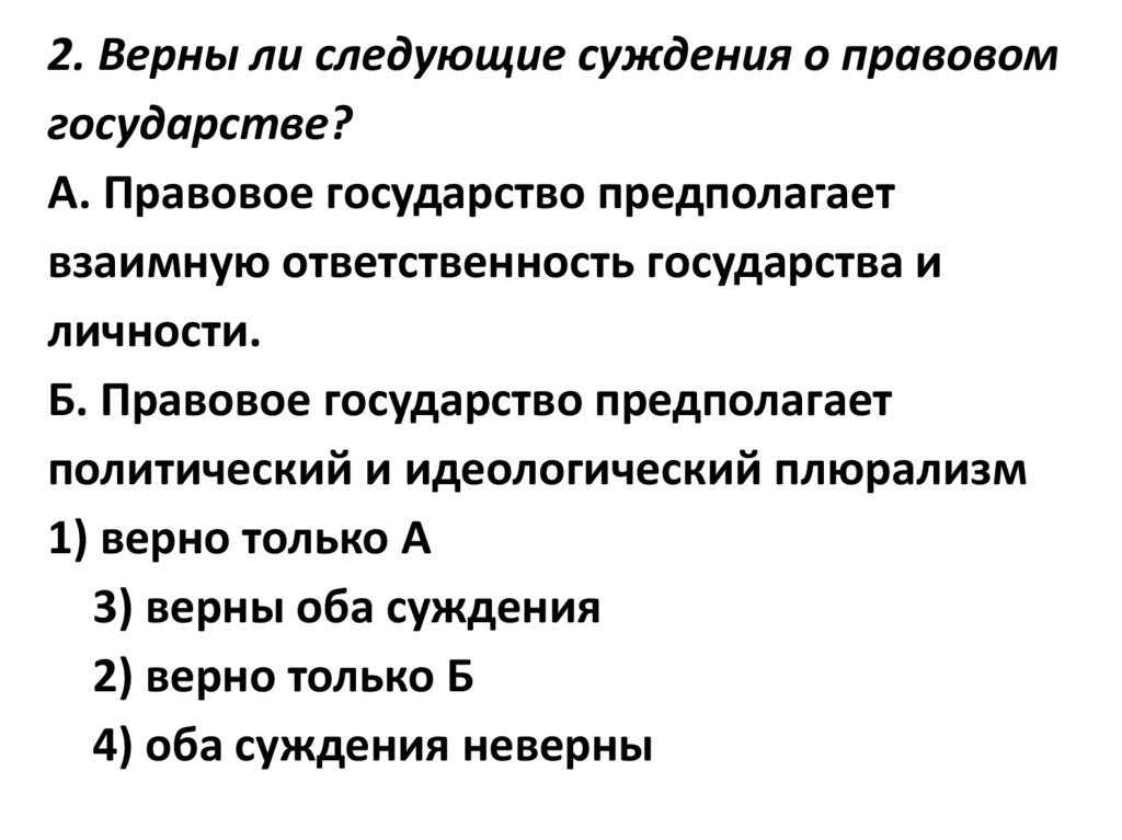 2. Верны ли следующие суждения о правовомгосударстве?