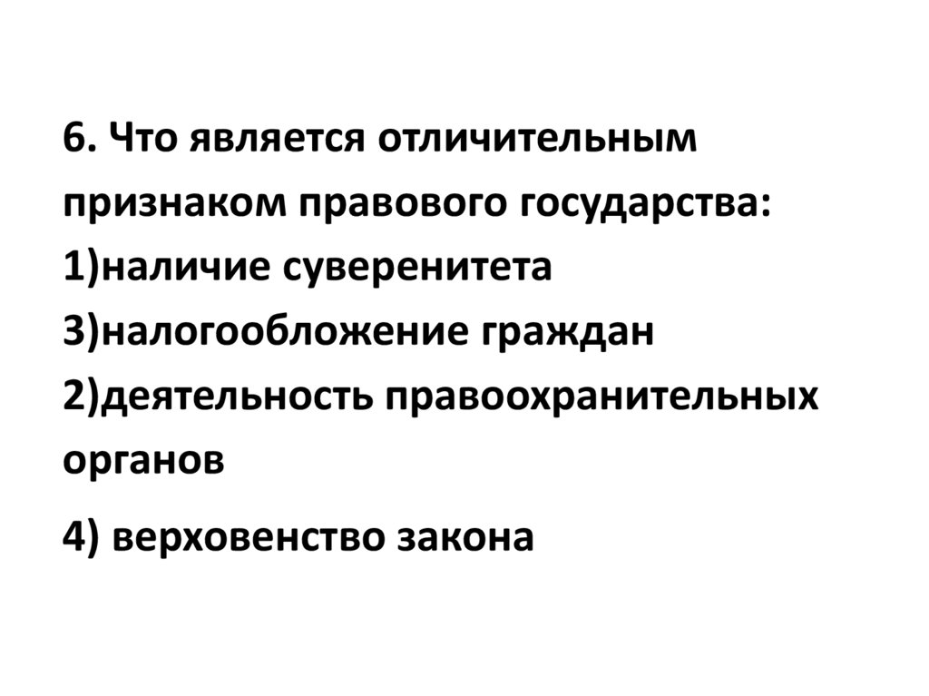 6. Что является отличительнымпризнаком правового государства: