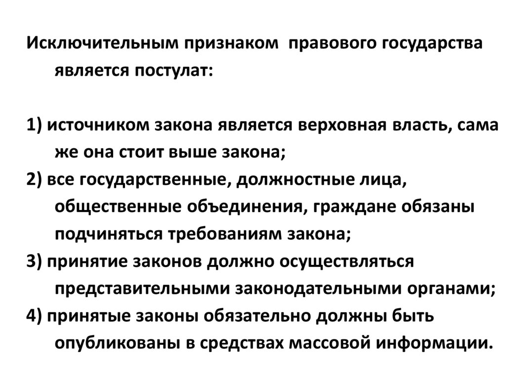 Исключительным признаком правового государстваявляется постулат:
