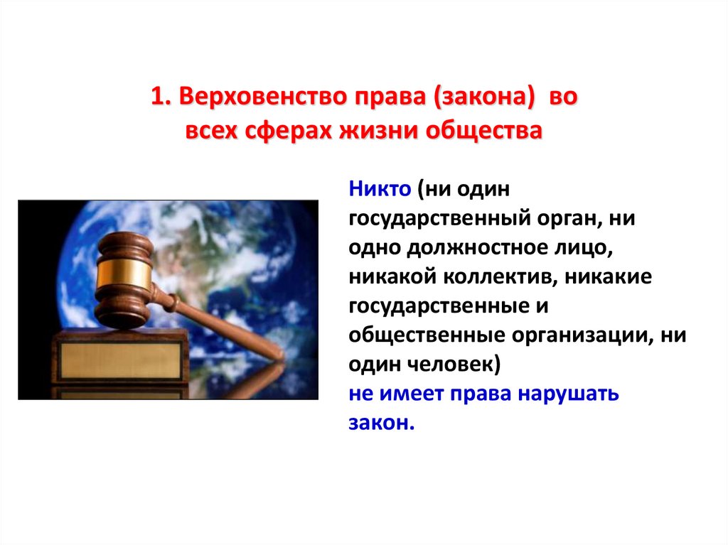 1. Верховенство права (закона) вовсех сферах жизни общества