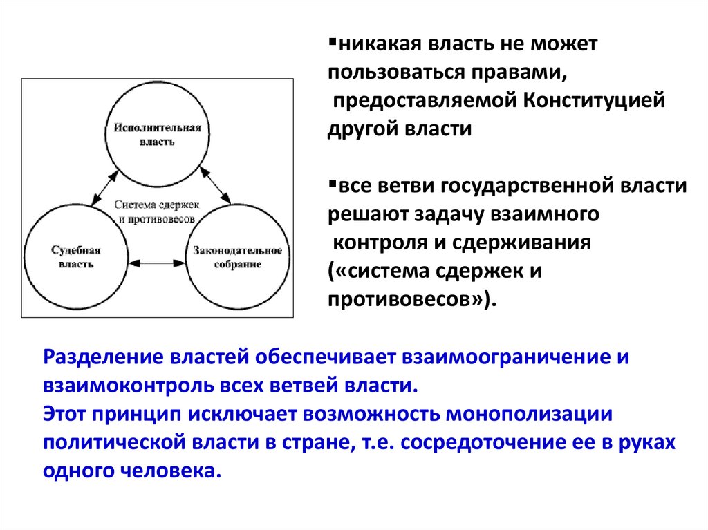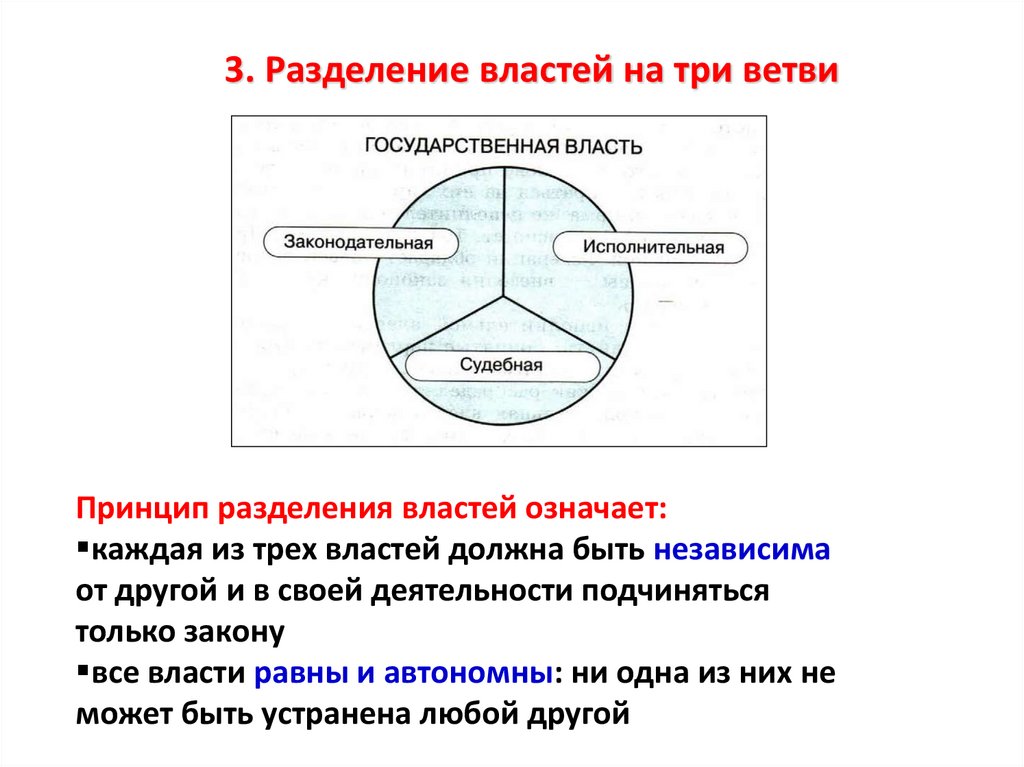 3. Разделение властей на три ветвиПринцип разделения властей означает: