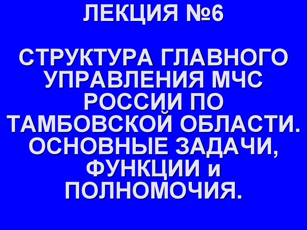 1. ЛЕКЦИЯ №6 СТРУКТУРА ГЛАВНОГО УПРАВЛЕНИЯ МЧС РОССИИ ПО ТАМБОВСКОЙ ОБЛАСТИ. ОСНОВНЫЕ ЗАДАЧИ, ФУНКЦИИ и ПОЛНОМОЧИЯ.