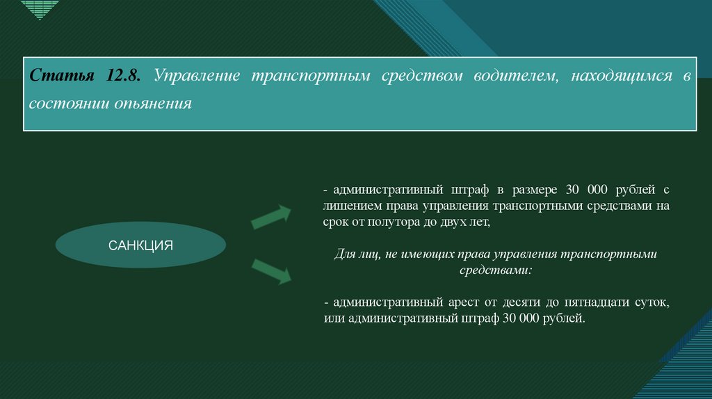 • Признаки опьянения – замешательство, невнятная речь, неуклюжесть,