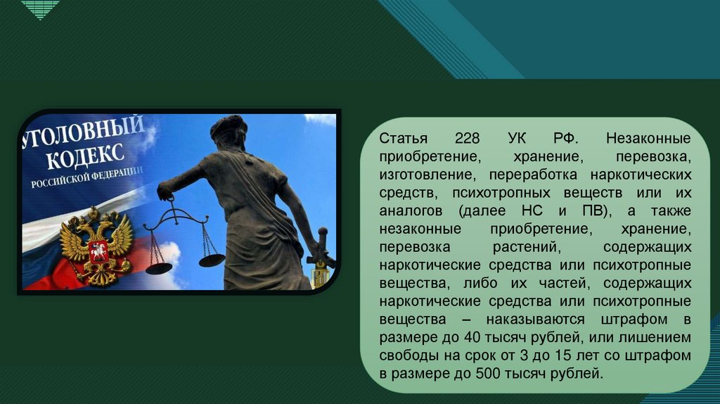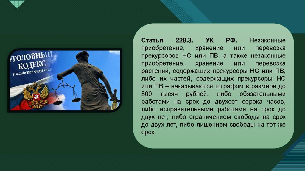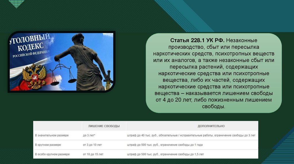 Статья 228.1 УК РФ. Незаконныепроизводство, сбыт или пересылка