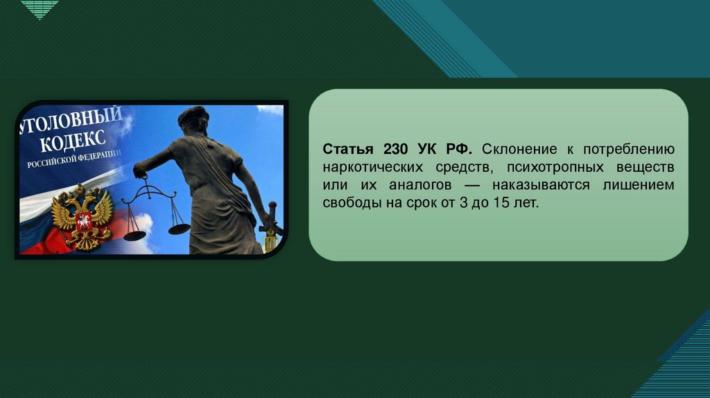 Статья 230 УК РФ. Склонение к потреблениюнаркотических средств, психотропных веществ