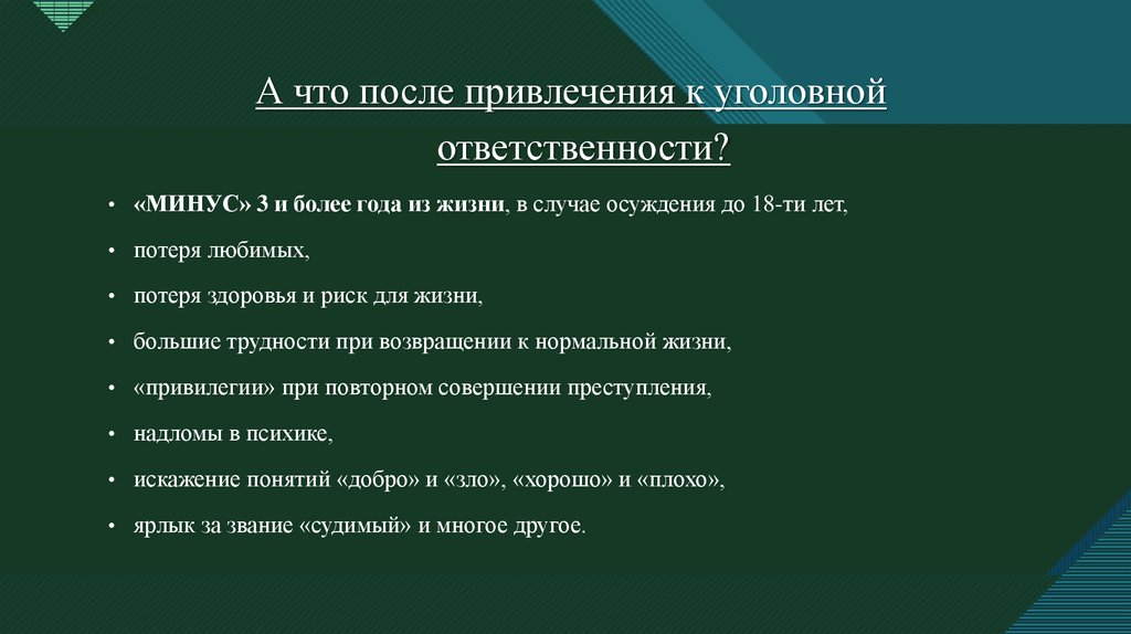• «МИНУС» 3 и более года из жизни, в случае осуждения до 18-ти лет,