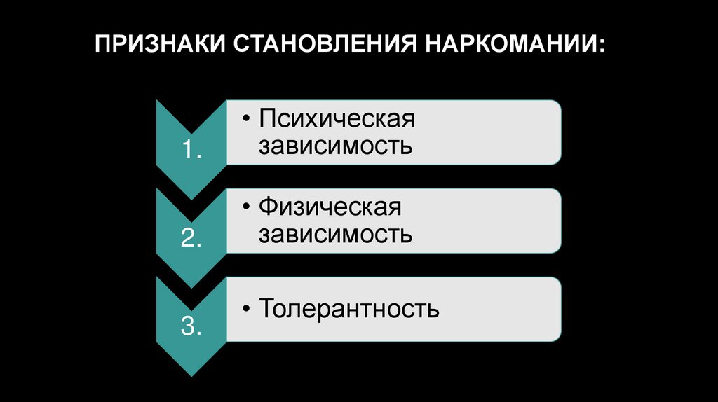 ПРИЗНАКИ СТАНОВЛЕНИЯ НАРКОМАНИИ:1.