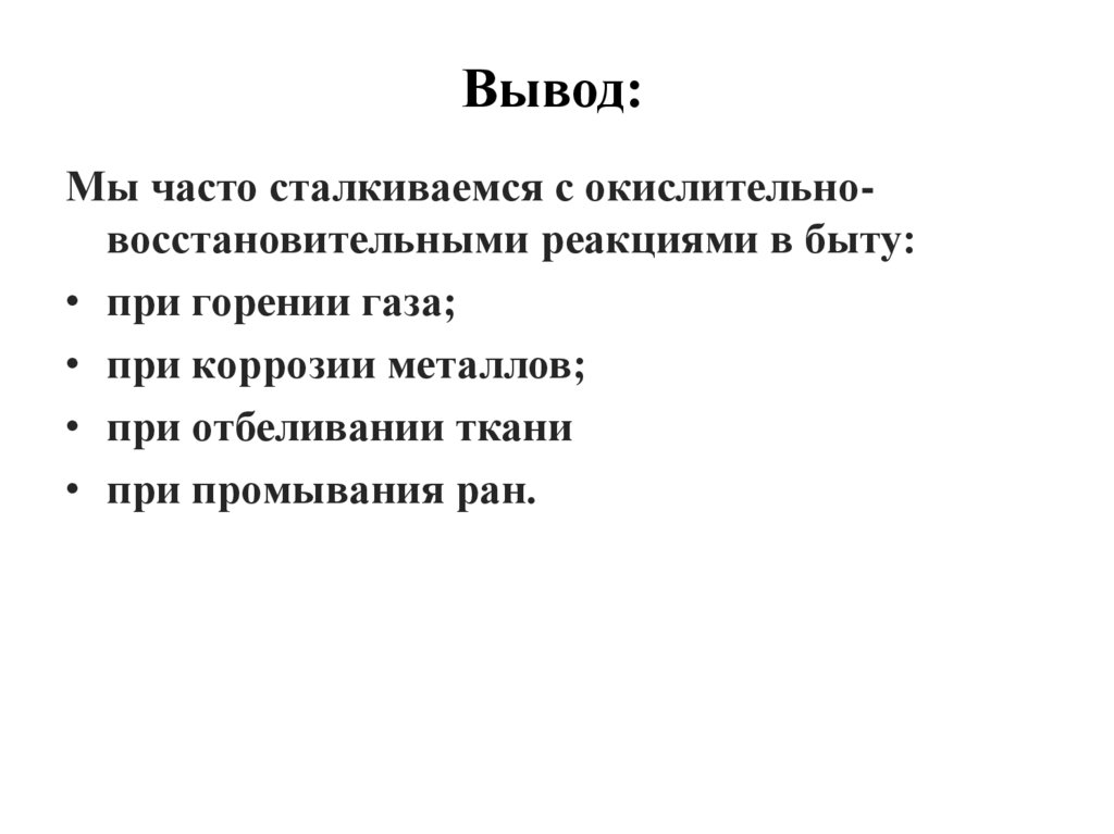 Вывод:Мы часто сталкиваемся с окислительновосстановительными реакциями в быту: