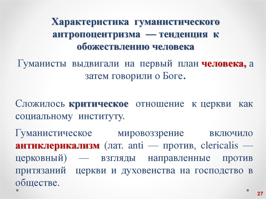 антропоцентризм, гуманизм, пантеизм.Гуманизм означал признание самоценности