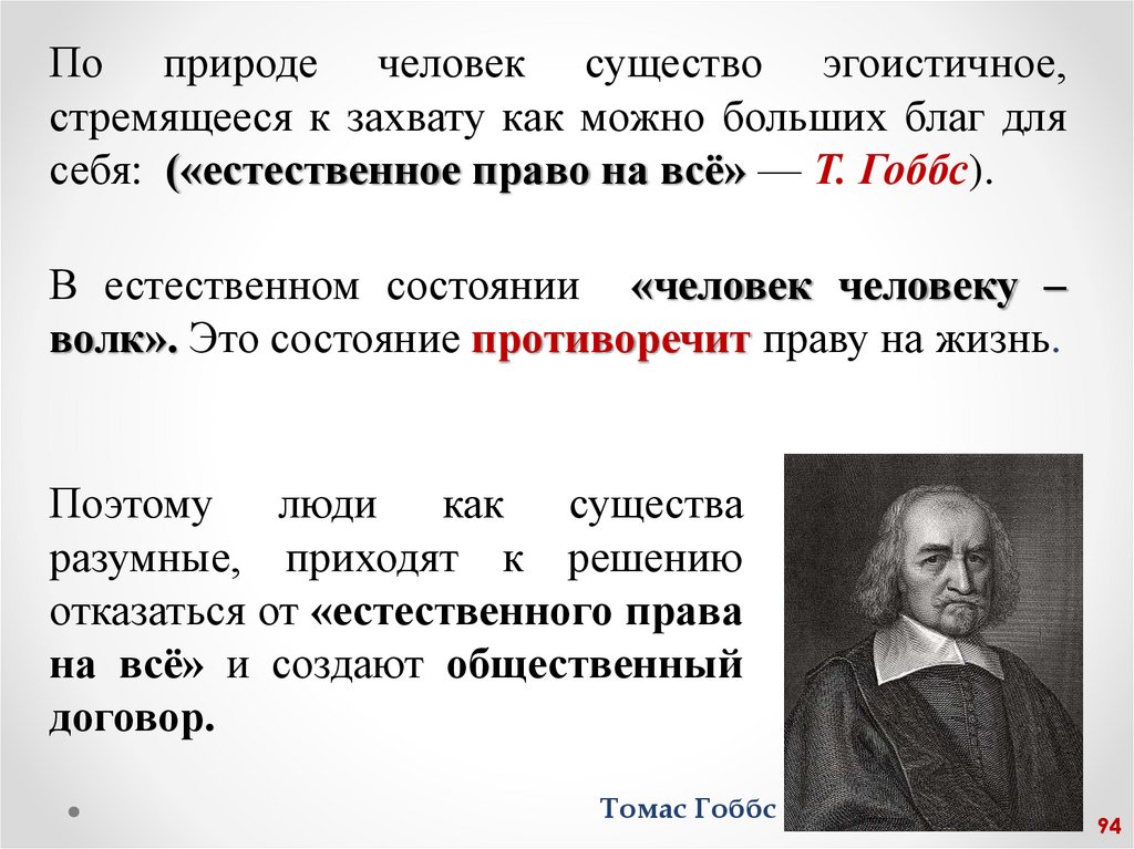 По природе человек существо эгоистичное,стремящееся к захвату как можно больших благ для