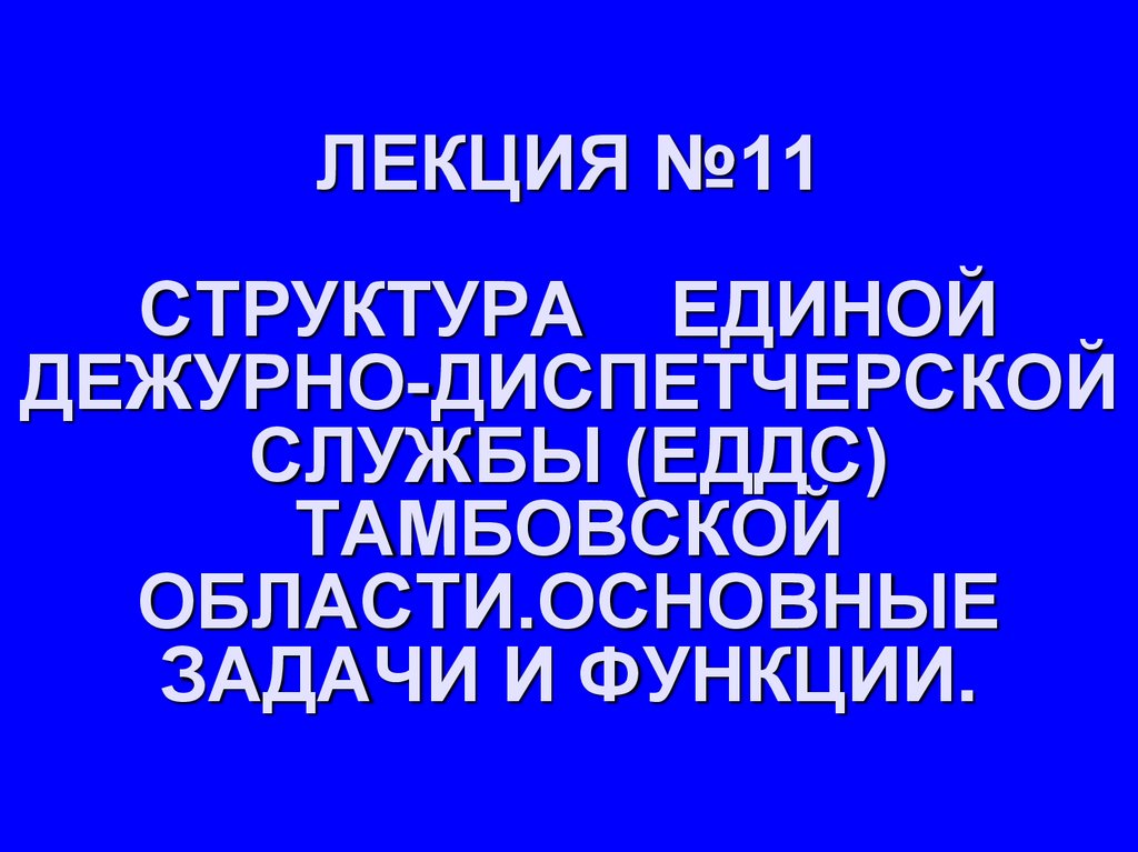 1. ЛЕКЦИЯ №11 СТРУКТУРА ЕДИНОЙ ДЕЖУРНО-ДИСПЕТЧЕРСКОЙ СЛУЖБЫ (ЕДДС) ТАМБОВСКОЙ ОБЛАСТИ.ОСНОВНЫЕ ЗАДАЧИ И ФУНКЦИИ.