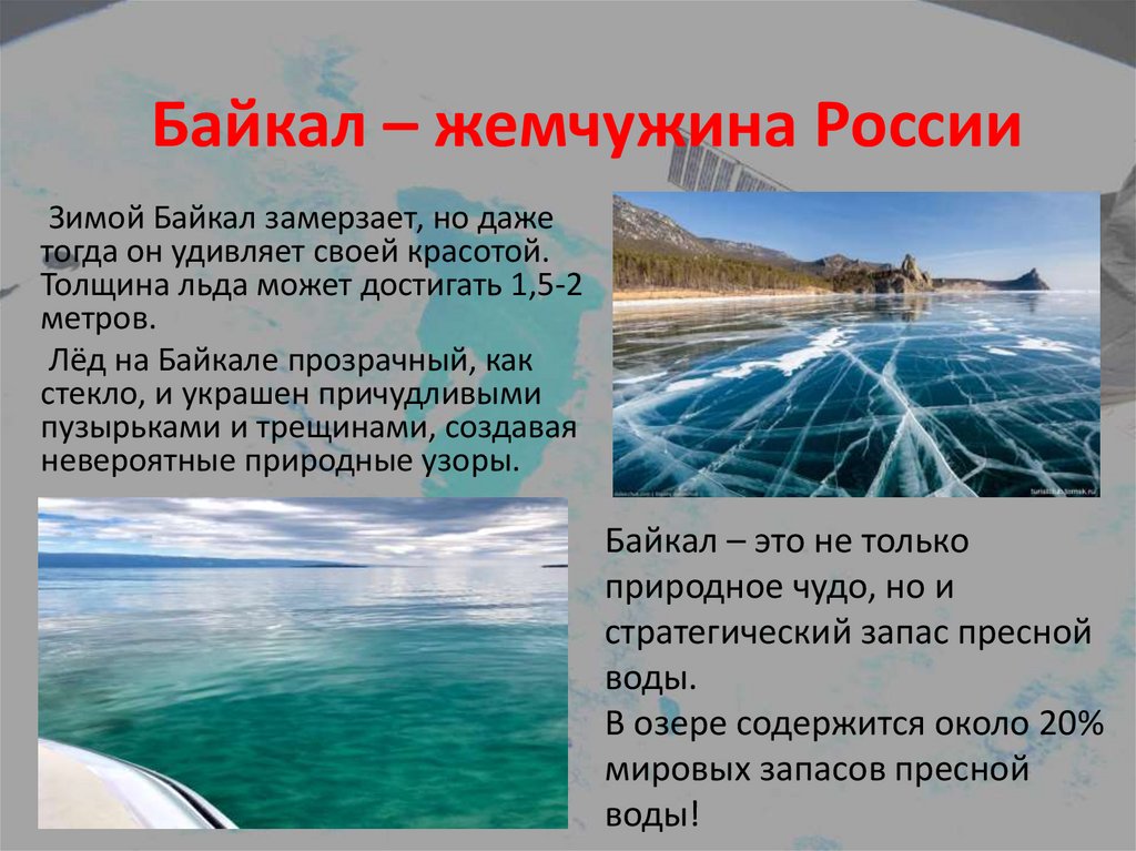 Байкал – жемчужина РоссииМы все должны беречь этот удивительный