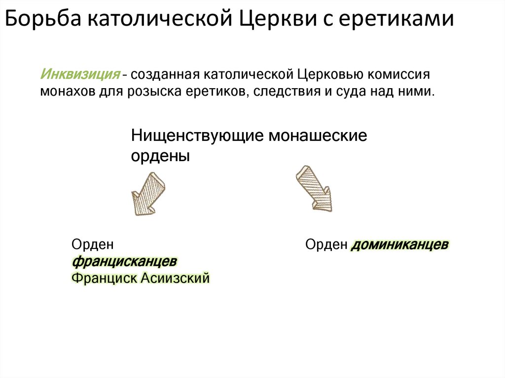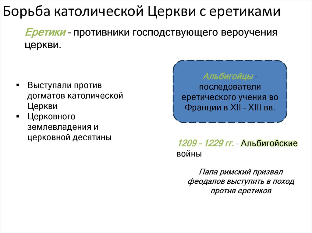 Борьба католической Церкви с еретикамиЕретики – противники господствующего вероучения