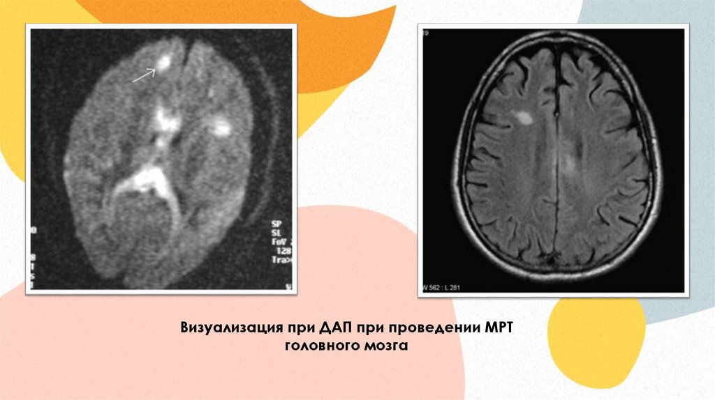 Визуализация при ДАП при проведении МРТголовного мозга