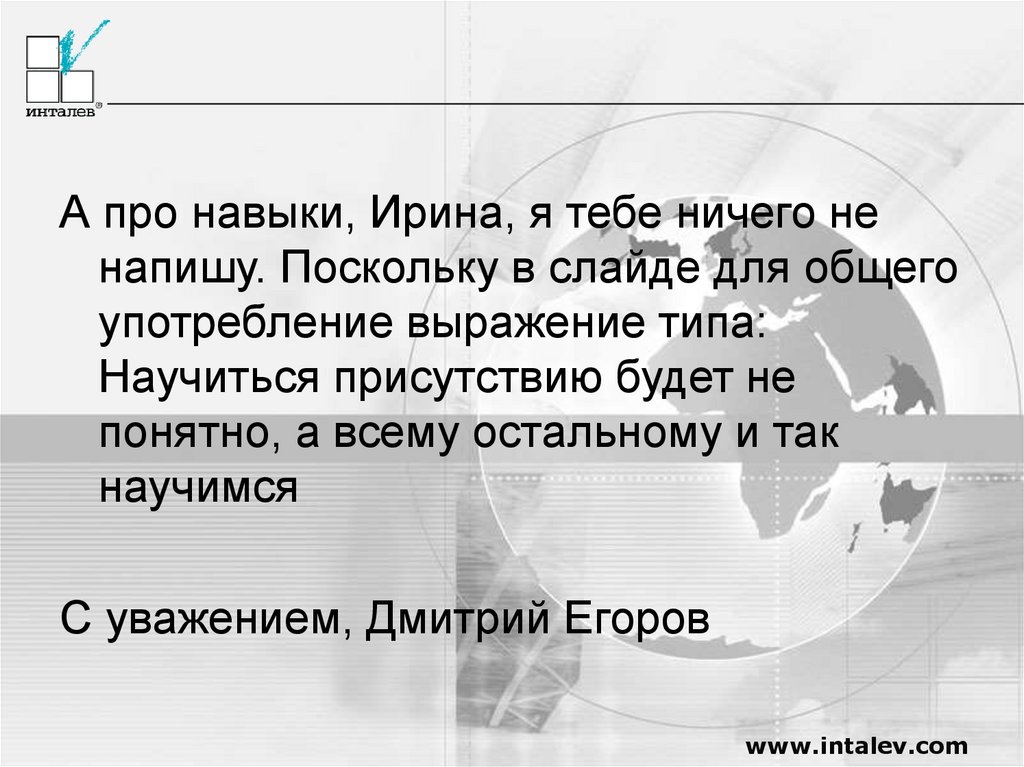 А про навыки, Ирина, я тебе ничего ненапишу. Поскольку в слайде для общего