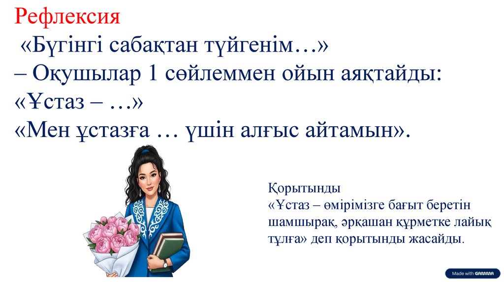 Рефлексия«Бүгінгі сабақтан түйгенім…»