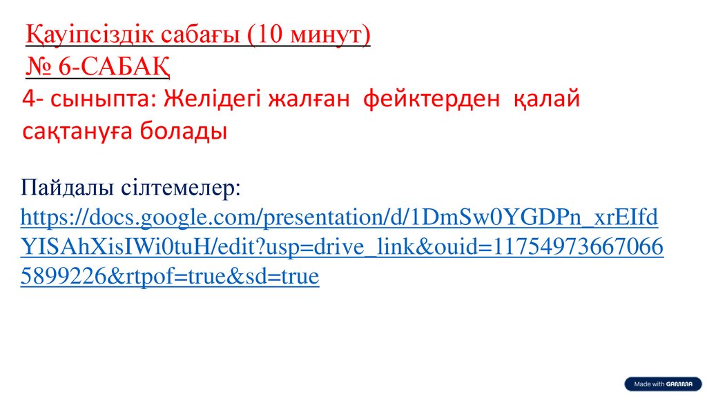 Қауіпсіздік сабағы (10 минут)№ 6-САБАҚ