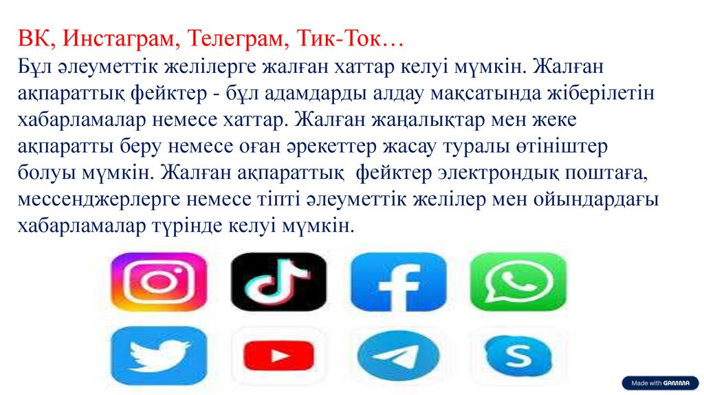 ВК, Инстаграм, Телеграм, Тик-Ток…Бұл әлеуметтік желілерге жалған хаттар келуі мүмкін. Жалған
