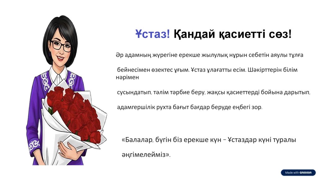 Ұстаз! Қандай қасиетті сөз!Әр адамның жүрегіне ерекше жылулық нұрын себетін аяулы тұлға